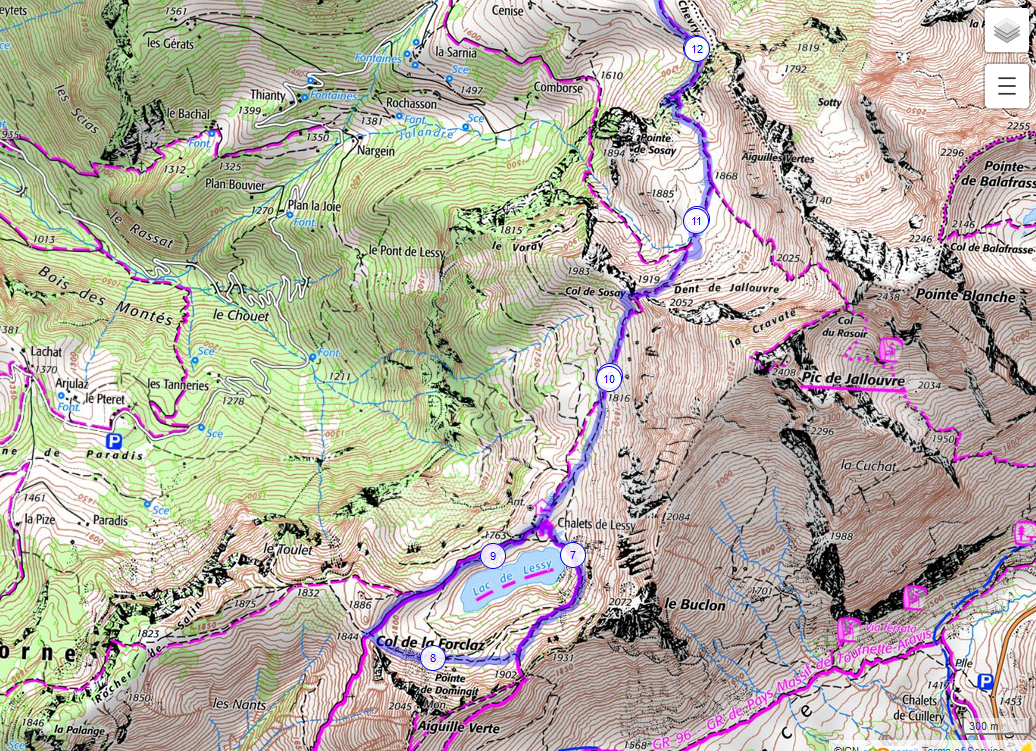 carte Il est le vestige d'un glacier suspendu qui occupait le site jadis. Blotti contre les flancs raides du Buclon et de l'Aiguille Verte, il occupe une bonne partie de la combe suspendue qui l'accueille.