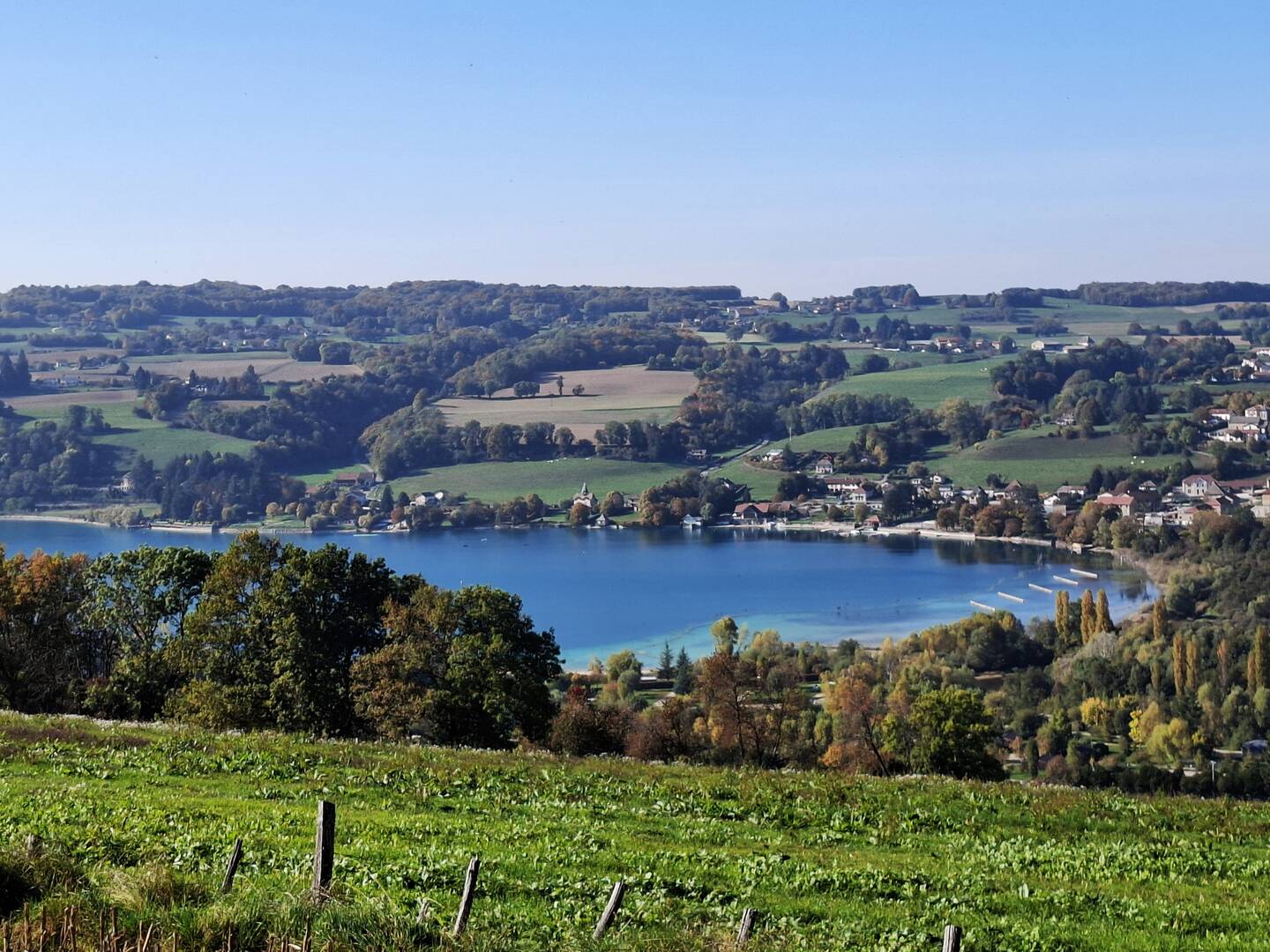Brézins, l'axe de Bièvre jusqu'au bout direction Paladru par la déviation d'Oyeu, le bord du lac jusqu'au parking de la plage de Paladru
